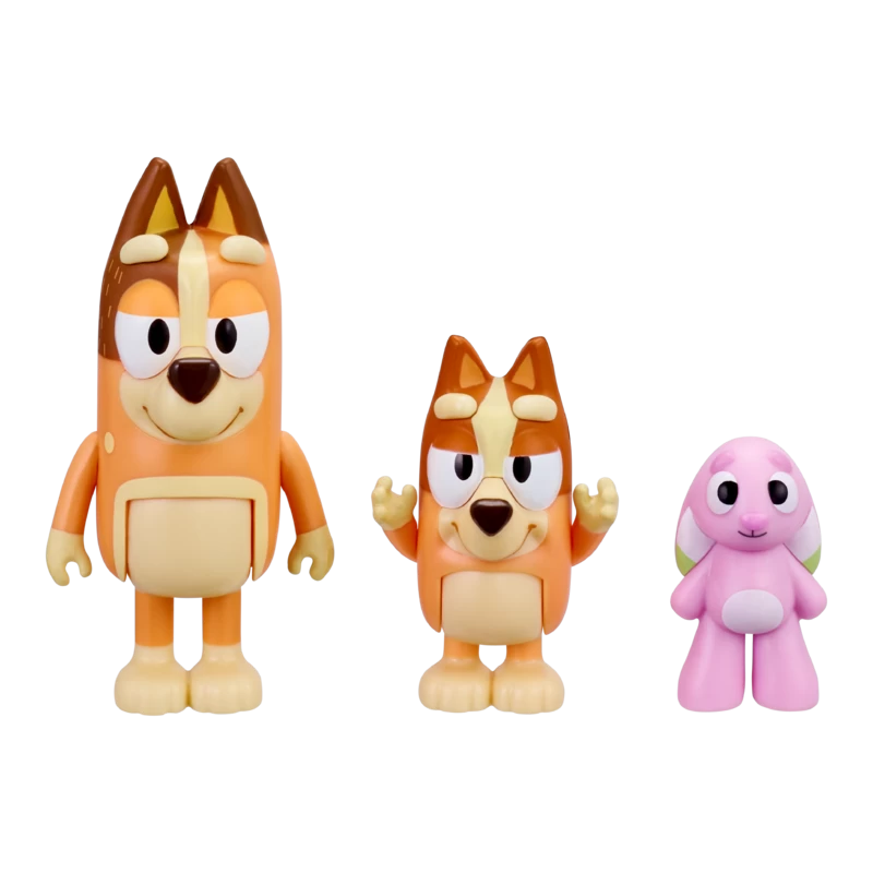 In the Bluey Sleepytime Theme 2 Pack is Mum, Bingo and Bingo’s favorite toy bunny – Floppy.