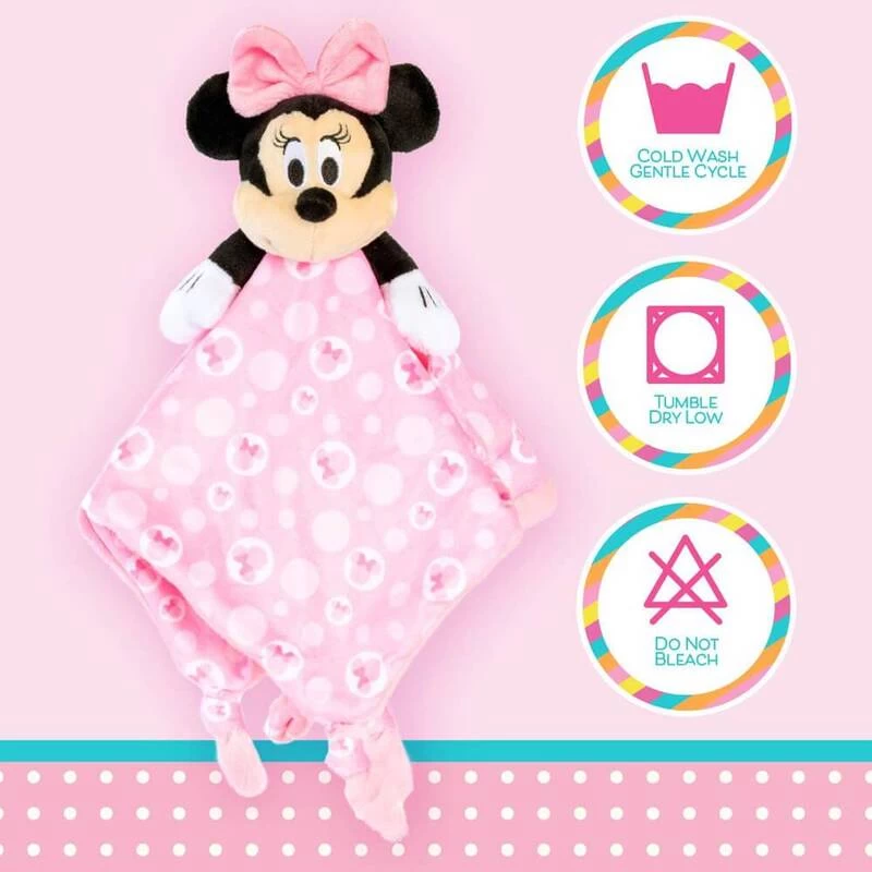 The Disney Baby Minnie Mouse Snuggle Blanky travels easily, bringing a bit of home with little ones wherever they go! The snuggle blanky is ultra-soft, with a classic Minnie Mouse print. It also contains a loop on the bottom of the blanky to hold baby’s pacifier, or favourite teether toy! Parents will love its easy care (machine washable) making it clean and like-new for years of great use! The blanky unfolds to 35 x 35cm. Suitable from birth. Made from baby-safe fabrics.