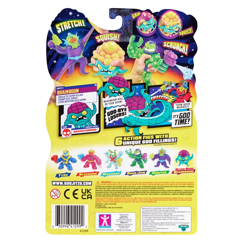 As well as our two returning heroes, there are four new Goo Jit Zu Aliens including the Ultra Rare Brainboom, squeeze his head and watch his brain expand!